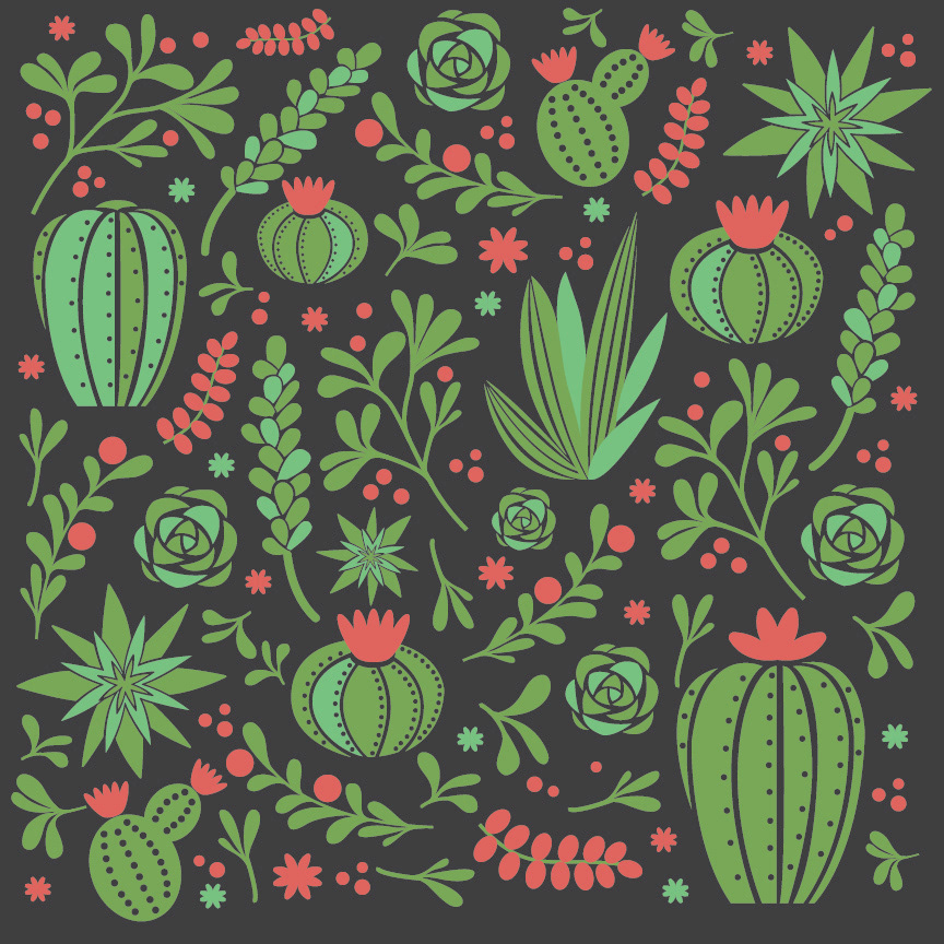 These festive cacti were commissioned by CASA Unlimited Enterprises, Inc. for their holiday card, but they're easily adapted to other color palettes for a range of uses.